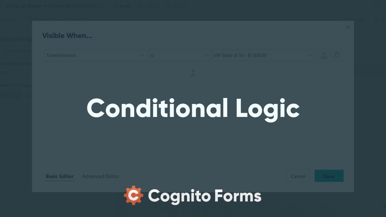 - In the conditional logic builder, specify the conditions that will trigger the field to appear.